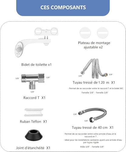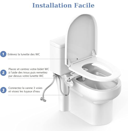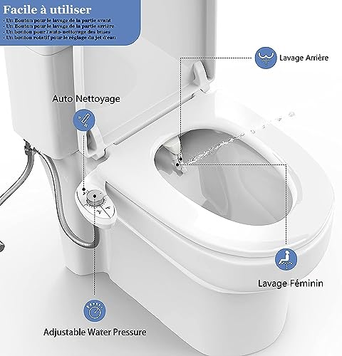 ✅ AUTO NETTOYAGE DES BUSES : Lorsque vous appuyez sur le bouton OFF, alors les buses de pulvérisation se rétractent et un jet d'eau s'écoule pendant quelques secondes pour nettoyer la tête de buse. ✅ SOLUTION PARFAITE POUR L'HYGIÈNE PERSONNELLE : Fini le papier toilette, ce Kit Bidet sous abattant WC est idéal pour améliorer l'hygiène de vos parties intimes . Grâce à l'utilisation de l'eau, ce kit sous abattant WC vous permet d'effectuer un nettoyage parfait et vous procure une sensation de propreté et de bien être. ✅ UTILISATION : En fonction de la partie à nettoyer, vulvaire ou anale, appuyer sur le bouton qui servira à activer le pulverisateur choisi, puis, tournez le bouton rond central qui vous permettra de regler l'intensité de l'eau. Si vous choisissez le nettoyage de la partie vulvaire, alors la première buse s'activera. Si vous choisissez d'effectuer le nettoyage de la partie anale, alors la deuxième buse s'activera. Pour désactiver les buses, il vous suffit d'appuyer sur le bouton OFF. Les buses de pulverisation se désactiveront automatiquement. ✅ ÉCOLOGIQUE : La fabrication de papier WC nécessite énormément d'eau. Pour un rouleau de papier hygiénique, il faut 150 litres d'eau alors que l'utilisation du kit bidet sous abattant WC ne requiert que seulement 0.5L d'eau . La production mondiale de papier toilette représente environ 15% de la déforestation. 27000 arbres sont abattus dans le monde pour fabriquer du papier WC