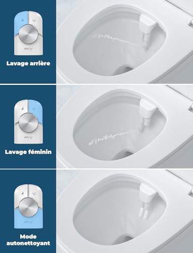 - Double buses rétractables : Une buse pour un nettoyage doux spécialement adapté aux femmes, et une autre plus puissante pour un nettoyage arrière complet.